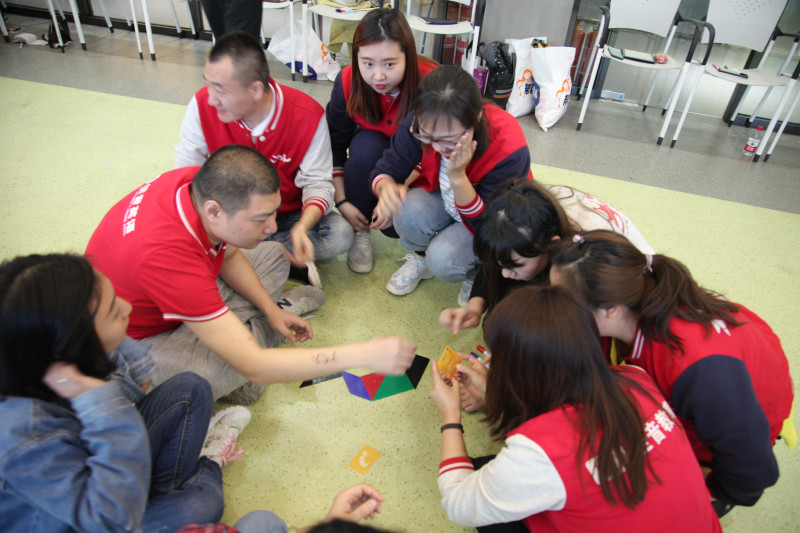 刘老师在对学员进行破冰团建后,重新组成了5个分校。并让每个分校各自设计展示了自己学校的校名,宗旨,文化,目标等元素。随后进行了七巧板项目,小游戏,大含义,学员们在经过半个小时的体验后,从游戏中的各种情况体会到了真实管理中所遇到的瓶颈,从团队协作,沟通到自我内省,培养团队成员主动沟通到意识体验有效的沟通渠道和沟通方法,体会团队之间的合作的重要性,合理处理竞争关系。