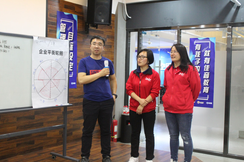 晚上,刘老师利用nlp教练工具开展了企业平衡轮圈课程,帮助各个佳音分校去分解他们要做的动作和一系列目标,比如控制老师和学生的流失,招生,并把这些目标一一分解,什么时候什么人什么目标,一步一步去做,一点一点去靠近目标。